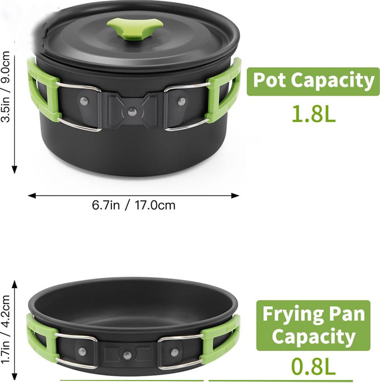Cocok untuk berbagai sumber panas termasuk kompor kemah, api terbuka, dan pemanggang portabel. Panci dan wajan menangani segala hal mulai dari merebus air hingga menggoreng makanan dengan mudah.