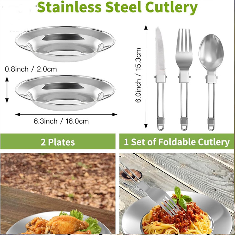 Perlengkapan komprehensif ini mencakup semua yang diperlukan untuk makan di luar ruangan: panci, wajan, cangkir, piring, garpu, pisau, dan sendok - memberikan solusi dapur lengkap untuk petualangan berkemah.