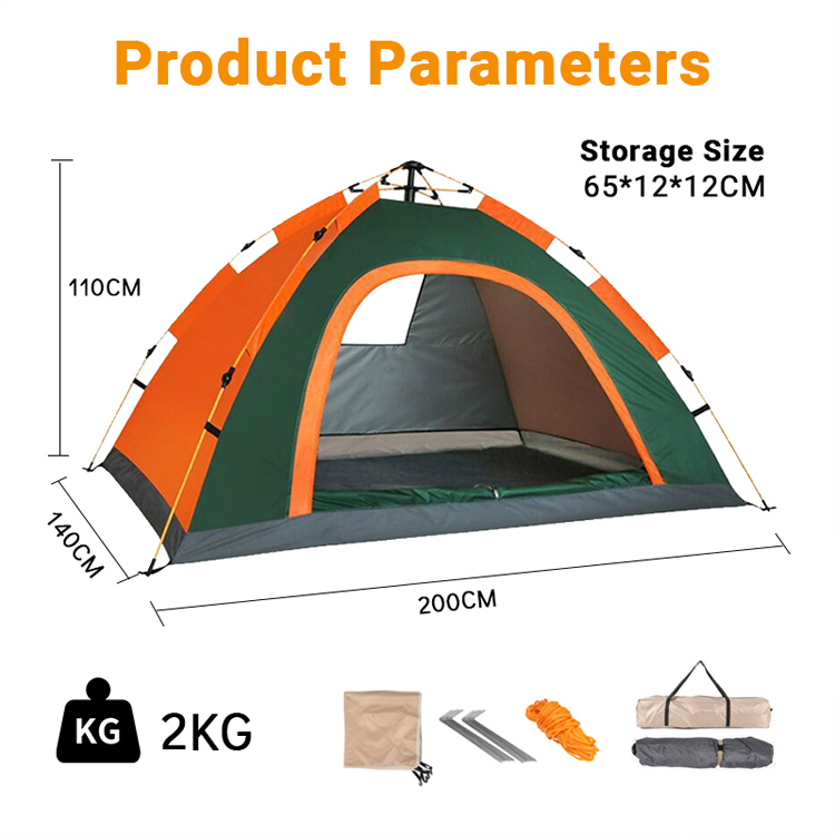 Tenda Otomatis Dua Lapis Oxford 210D Tahan Air Tahan Hujan. Tempat Berlindung Segala Cuaca Terbaik Anda untuk Petualangan Luar Ruangan. Tenda Dua Lapis Oxford 210D Ini Memiliki Fitur Pengaturan Otomatis Dan Perlindungan Tahan Hujan Yang Unggul. Dengan Tiang Fiberglass Ringan Dan Desain Mudah Dibawa, Sangat Cocok Untuk Berkemah Dan Tamasya BBQ.