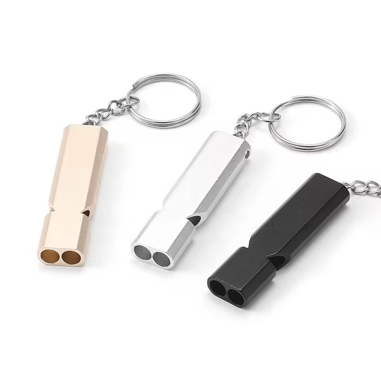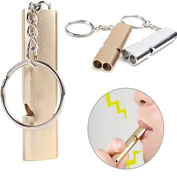 Gantungan Kunci Pengaman Tabung Kembar Portabel Peluit Bertahan Hidup Aluminium