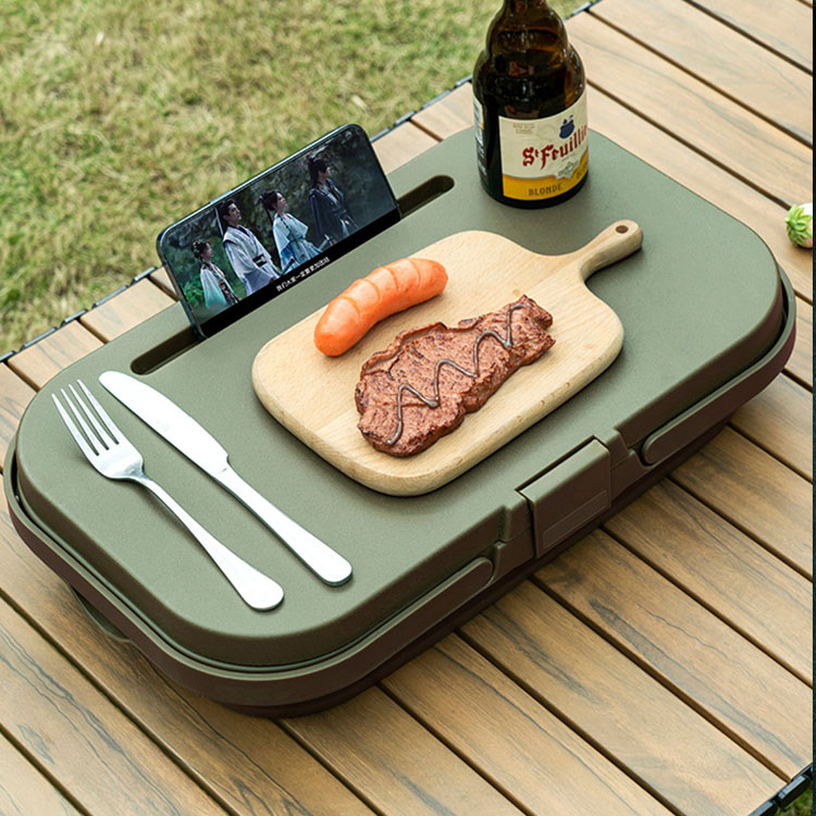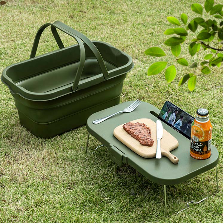 Keranjang inovatif ini berubah dari wadah penyimpanan dalam menjadi permukaan meja datar dan stabil dalam hitungan detik, menyediakan penyimpanan terorganisir dan platform penyajian/makan yang nyaman untuk aktivitas luar ruangan.