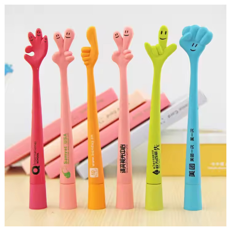 Logo Kustom Lucu & Cantik Dicetak Pulpen Plastik 1.0mm。 Pulpen Berbentuk Jari Yang Menyenangkan Dan Berwarna-warni Dengan Cetak Logo Kustom. Alat Tulis Kreatif 1.0mm Sempurna Untuk Anak-anak, Promosi, Pesta, atau Hadiah Sekolah. Bodi Plastik Tahan Lama, Aliran Tinta Halus, Dan Desain Lucu Yang Akan Disukai Semua Orang.