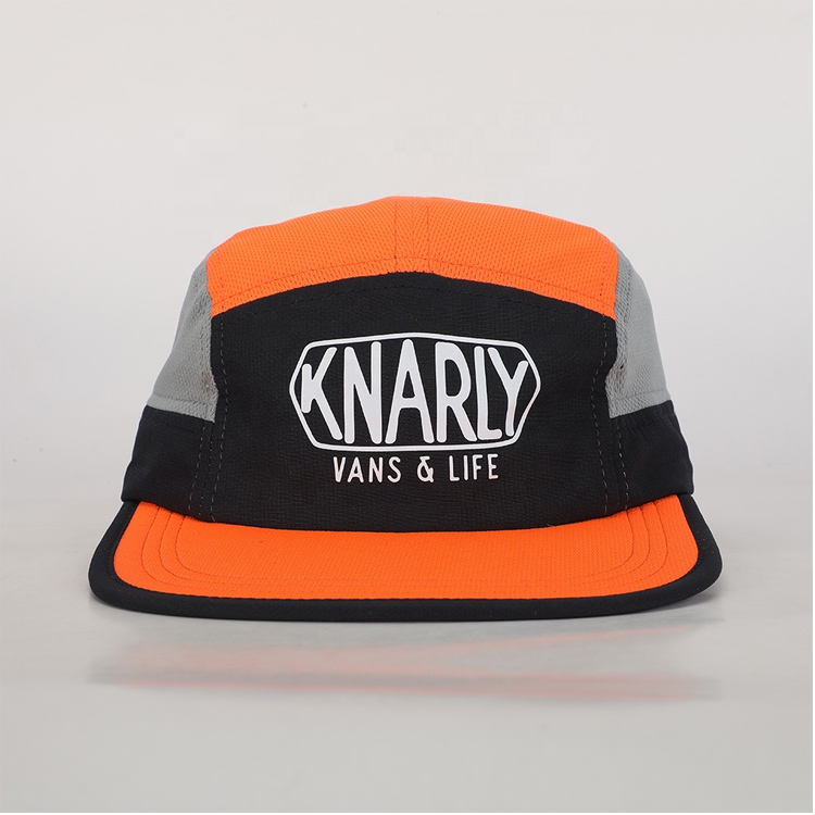 Desain Logo Bordir Seluruh Printing 5 Panel Camp Cap