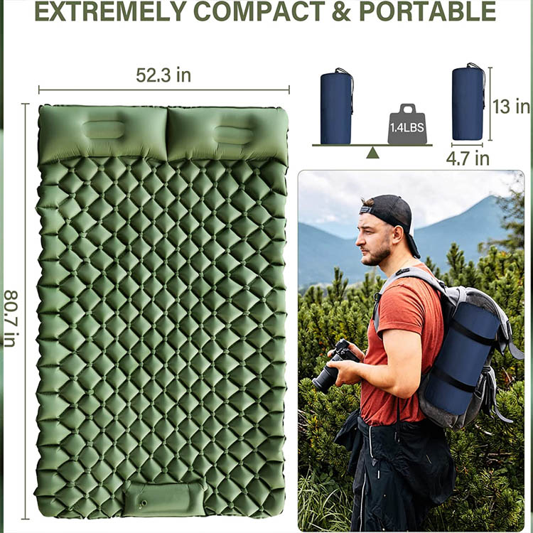 Bantalan Tidur Berkemah Dua Orang Bantalan Berkemah Tiup. Kenyamanan Ganda Terbaik untuk Petualangan Luar Ruangan. Bantalan Kemah Tiup Dua Orang Ini Menawarkan Ruang Tidur Yang Luas Dengan Desain Penahan Kaki Yang Inovatif Untuk Mencegah Geser. Sebagai Solusi Ultra Ringan, Produk Ini Memberikan Portabilitas Tak Tertandingi Dan Kenyamanan Bersama Untuk Pasangan dan Teman Berkemah.