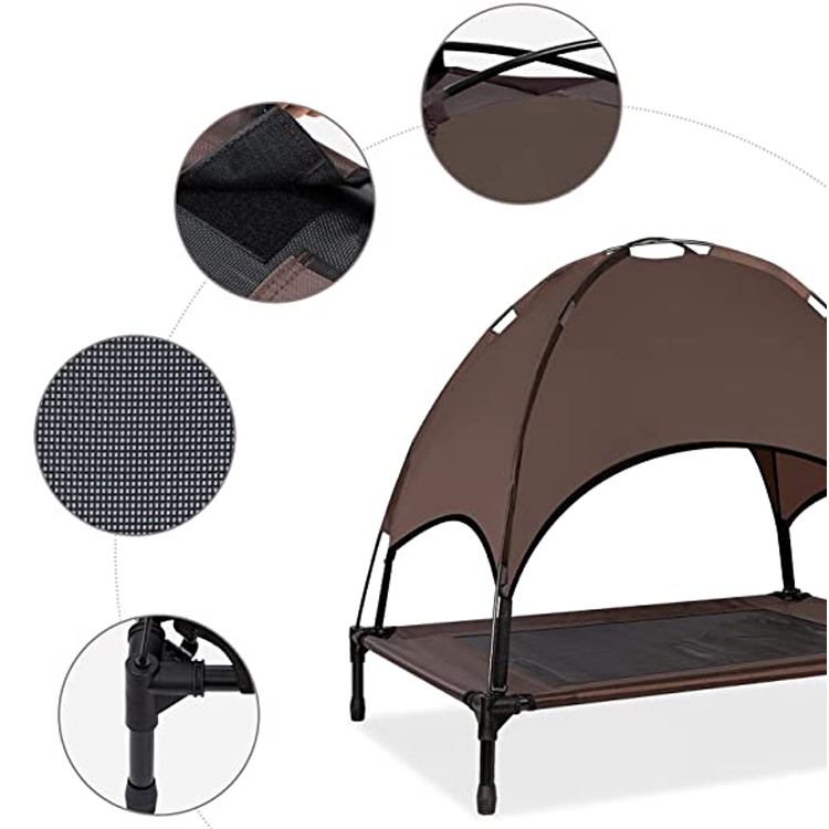 Tempat Tidur Anjing Luar Ruangan dengan Kanopi, Tempat Tidur Anjing Tinggi dengan Naungan Kanopi yang Dapat Dilepas, Tempat Tidur Hewan Peliharaan Dibesarkan Pendingin Luar Portabel untuk Anjing dan Kucing