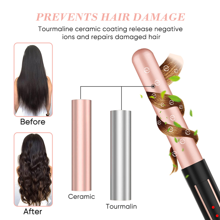 1. Perangkat keramik Tourmaline 5 100% Tourmaline.bead25mm; 2.PTC pemanas, panas cepat; 3.3. Dua Potongan Stander Plastik di Bagian Hubungkan; 4. mudah digunakan, tekan dua tombol untuk mengeluarkan barel, 5. Fungsi Kunci Outo Saat Masukkan Barel Kembali. 6.LCD Digital Display 80-230 ° C (180-450 ° F), dengan ° C dan ° F dapat ditukar 7.1H fungsi mati otomatis 8. Produk Warna yang sama dengan kawat. 9. Worldwide 100-240V Tegangan Ganda
