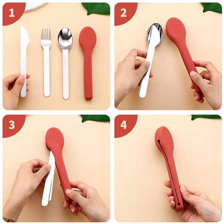 Set Peralatan Makan Perjalanan Berkemah Berkualitas Tinggi Silikon Portabel. Teman Makan Utama Anda Untuk Petualangan Luar Ruangan. Set Peralatan Makan Berkualitas Tinggi Ini Dilengkapi Sendok Garpu Baja Tahan Karat Tahan Lama Dalam Wadah Silikon Pelindung. Sempurna Untuk Berkemah, Bepergian, Dan Piknik, Menjamin Tempat Makan Yang Elegan Dan Higienis Di Mana Saja.