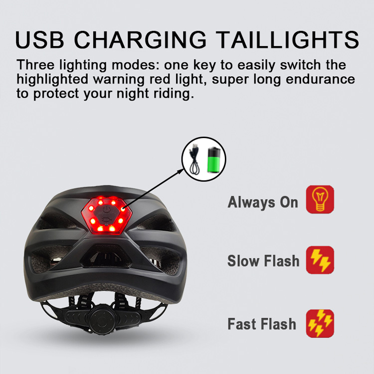 Helm Sepeda Jalan Keselamatan Bernapas Lampu Belakang yang Dapat Diisi Ulang