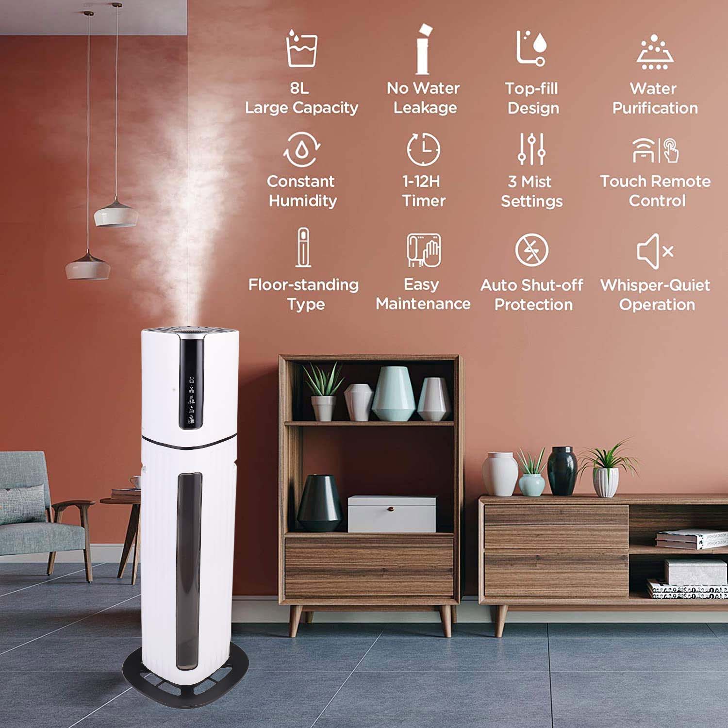 ✔✿FLOOR HUMIDIFIER:➤ : Humidifier berkapasitas besar kami mendukung layanan online 24 jam untuk pengembalian uang, pengembalian, atau bantuan teknis apa pun. Tidak bocor & Tidak membasahi lantai. Remote Control & Tombol Sentuh berfungsi keduanya. Pengaturan waktu 12 jam. Mode Whisper-Quiet & Sleep. Bantu keluarga Anda meredakan hidung tersumbat, sinus, kulit kering, hidung berdarah, pilek, dll. Sangat cocok untuk digunakan sepanjang tahun!