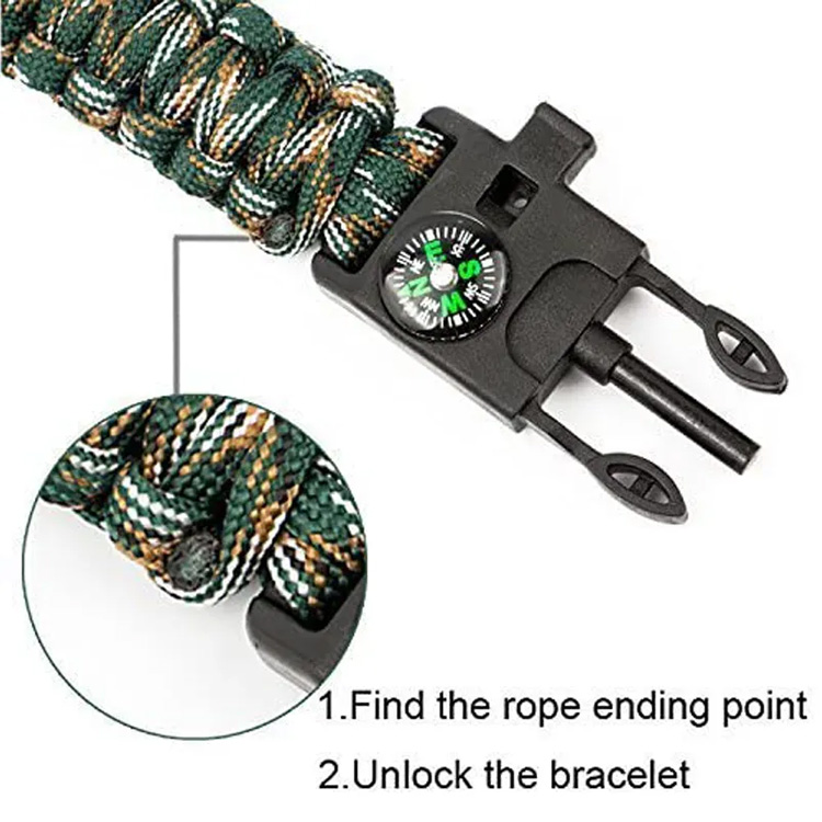 Grosir Sampel Kelangsungan Hidup 550 LBS Gelang Paracord Taktis. Perlengkapan Bertahan Hidup Penting Anda Untuk Petualangan Luar Ruangan. Gelang Paracord Taktis Ini Memiliki Kekuatan 550 LBS yang Luar Biasa. Sempurna Untuk Berkemah Dan Situasi Darurat, Menawarkan Utilitas Praktis Dan Desain Bergaya. Tersedia Untuk Grosir Dengan Sampel Gratis.